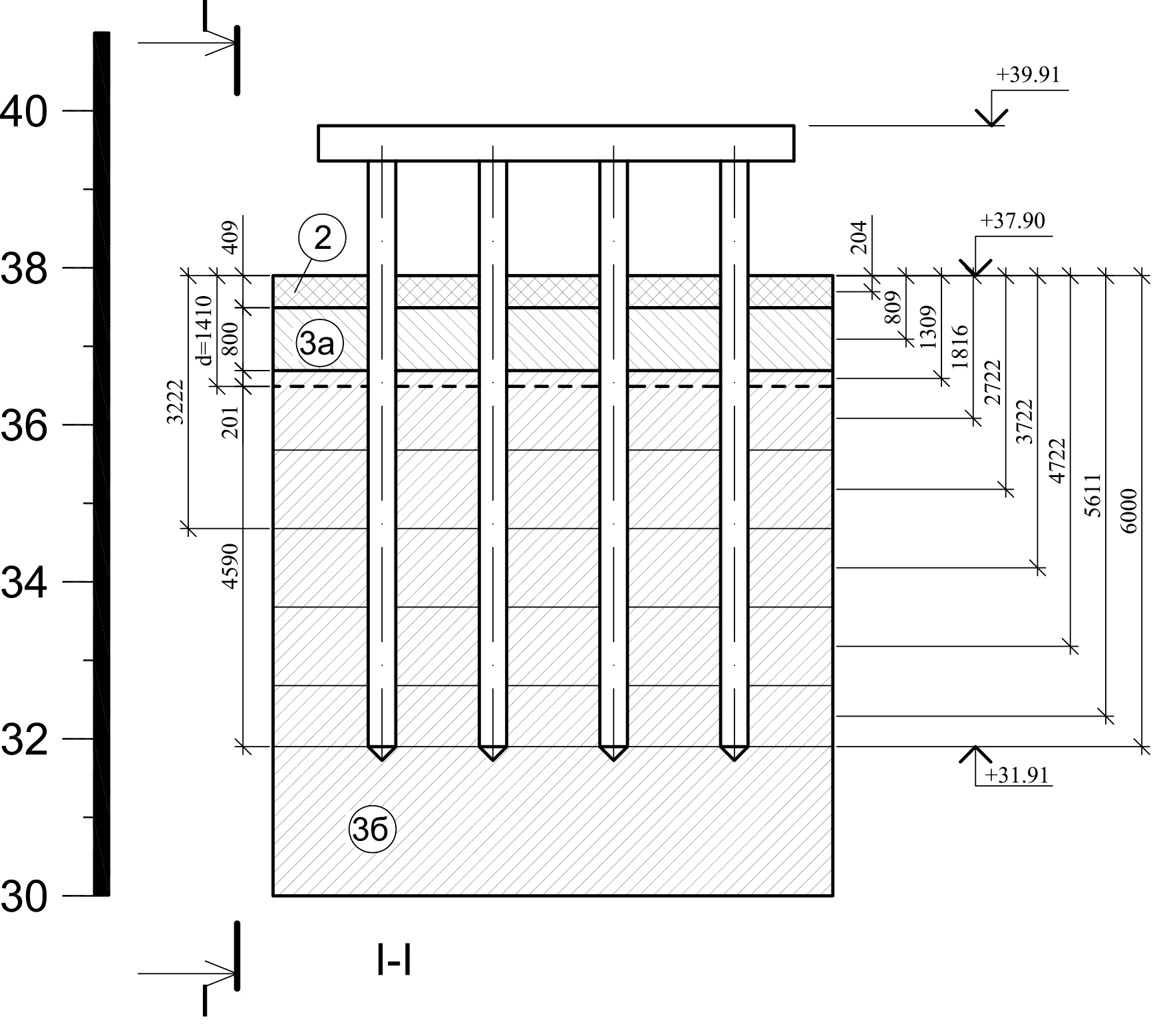 По фундаменту проверяют прочность основных элементов (сваи, оболочки, столбы — в зависимости от конструктивного решения). Отдельно оценивают несущую способность основания, то есть способность грунтового массива воспринимать переданные усилия без недопустимых деформаций и потери устойчивости.